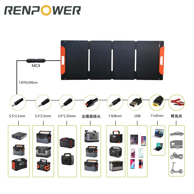 II. 100W Portable Polding Solaris Stragulum Securus ad MANTICA et compatible cum maxime solaris generantibus in foro.